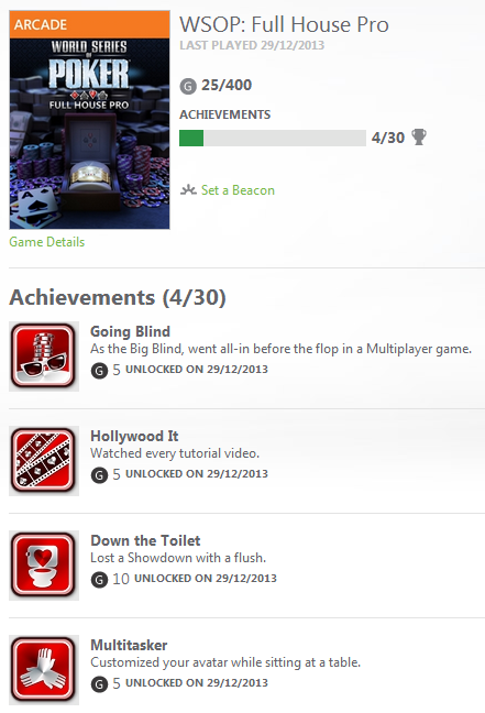 I am not big gambling game fan, because I tend to be unlucky person, what becomes to "games of chance" and lotteries and such. Still, had some fun in the game and got 4 achievements in it.